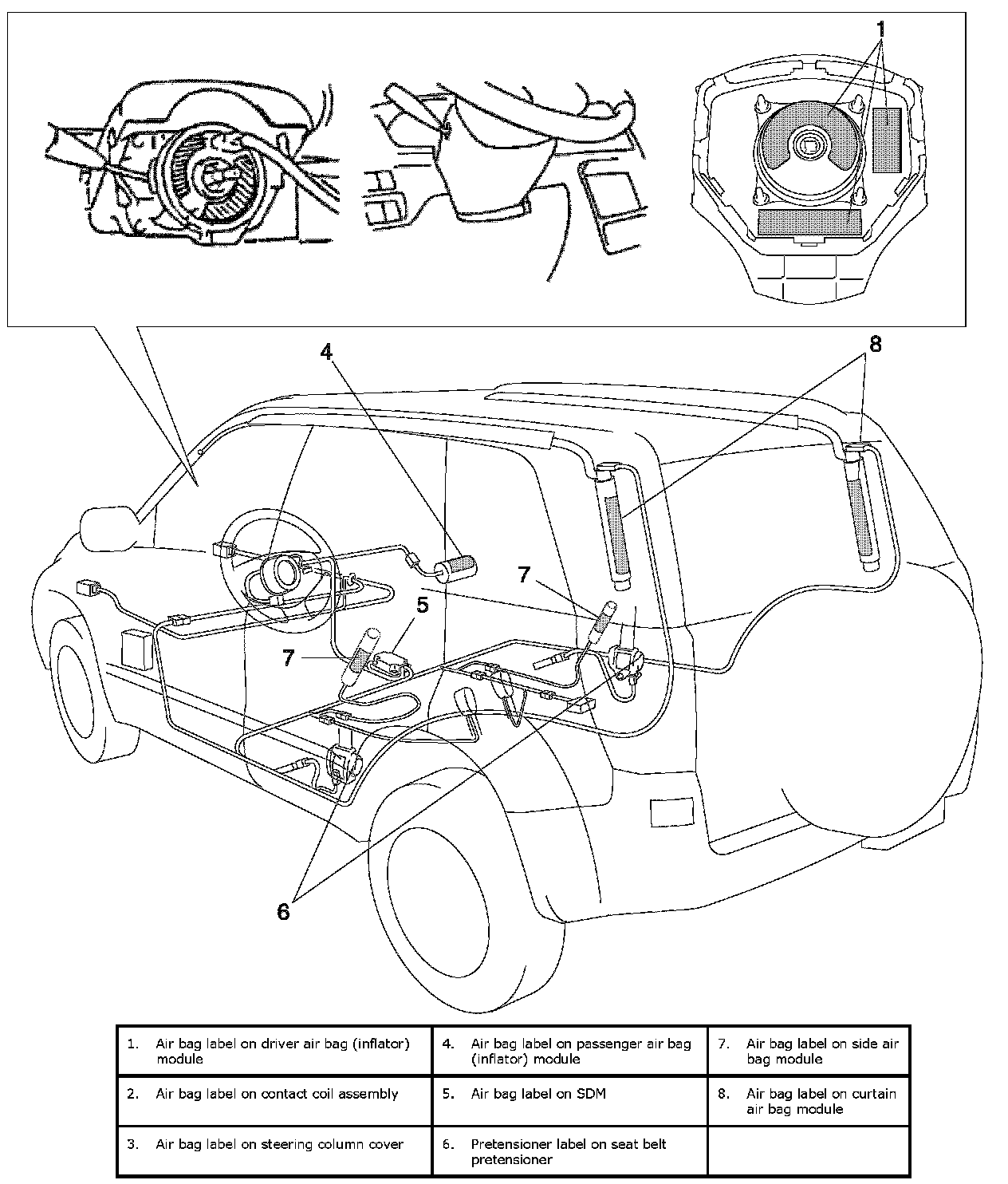 NOTE: Air bag labels are attached on the vehicle equipped with air bag system only.