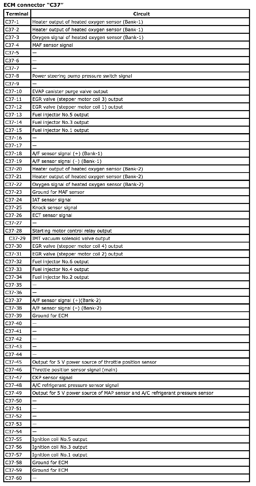 Terminal arrangement of ECM (PCM) connector (Viewed from harness side):