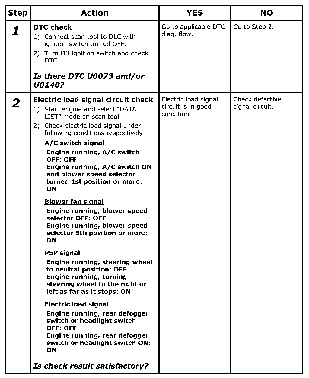 Electric Load Signal Circuit Check