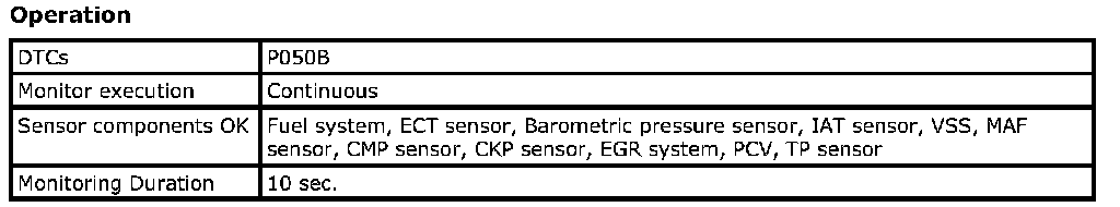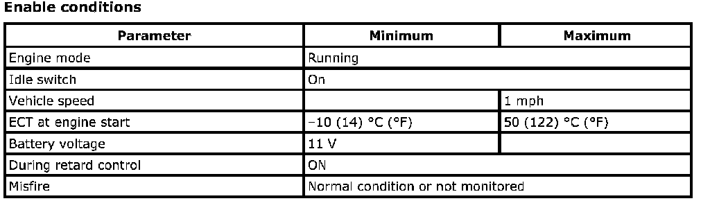 The ECM retards the ignition timing and increases the idle speed to quickly increase the catalyst temperature at cold start to reduce emissions. The ECM monitors the ignition timing and the idle speed for cold start. If the idle speed or the ignition timing is out of specification, the ECM will set DTC.