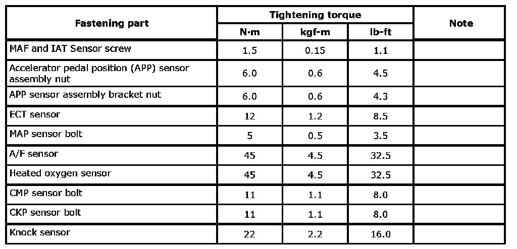Tightening Torque SpecificationsTightening Torque Specifications: