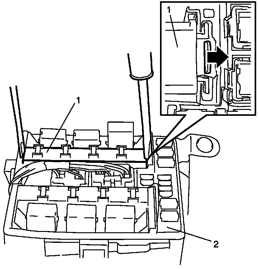 2. Remove integration relay No.2 (1) from fuse box No.2 (2).