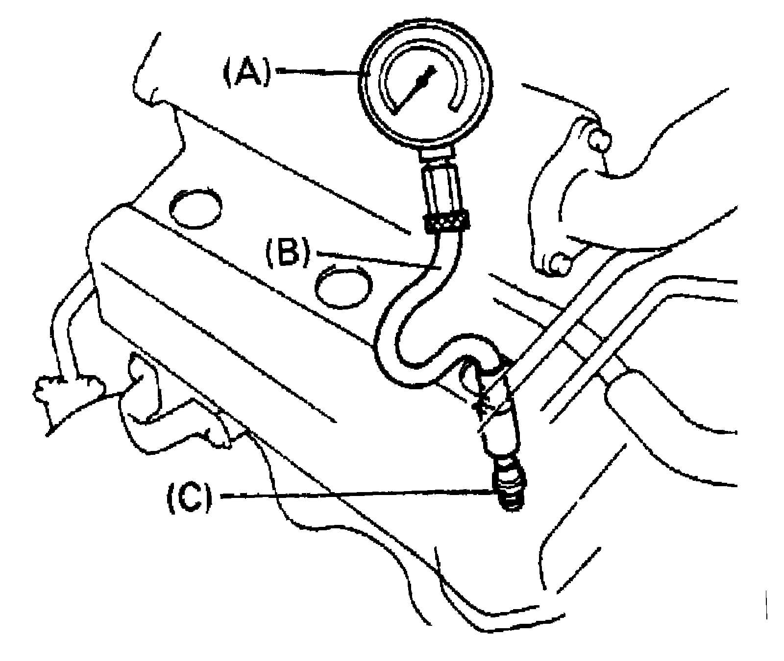 8. Crank engine with fully charged battery, and read the highest pressure on compression gauge.