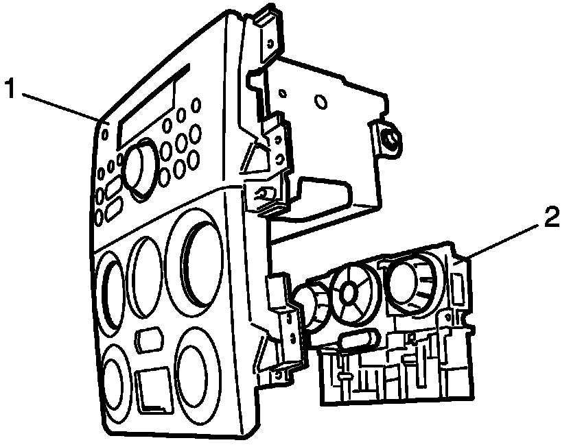 Remove HVAC control module mounting screws and then, remove HVAC control module (2) from center garnish (1).