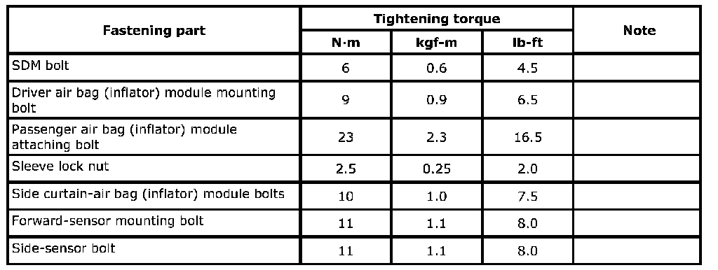 Air BagReference:For the tightening torque of fastener not specified in this section, refer to Fastener Information.