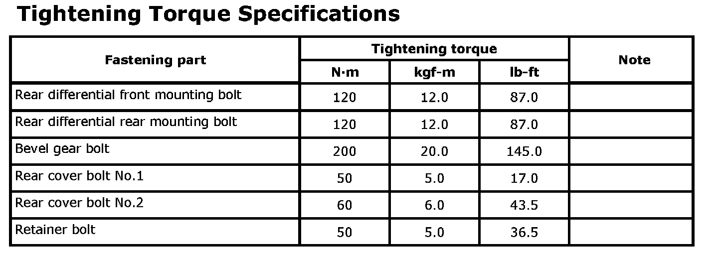 Tightening Torque Specifications NOTE: The specified tightening torque is also described in the following.