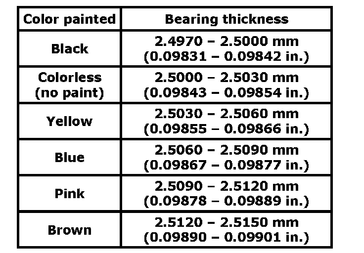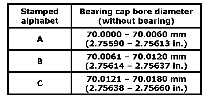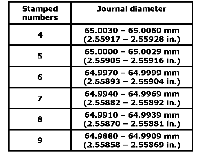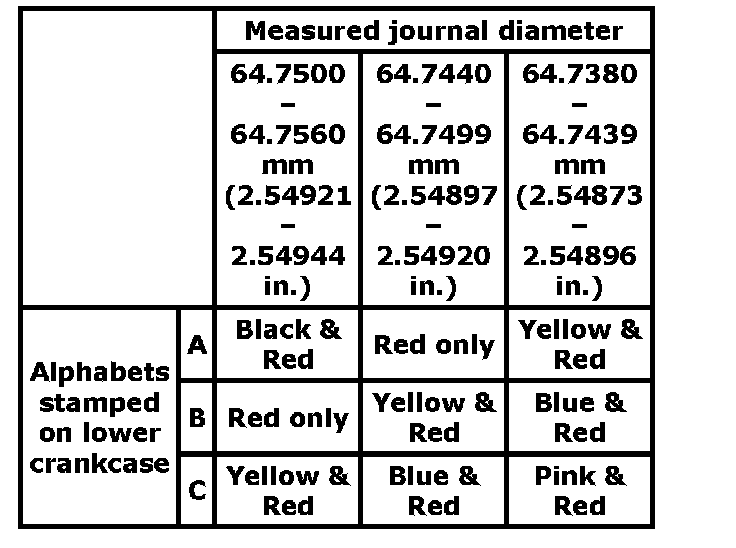 Main Bearing Cross-Reference Table (Undersize Bearing)
