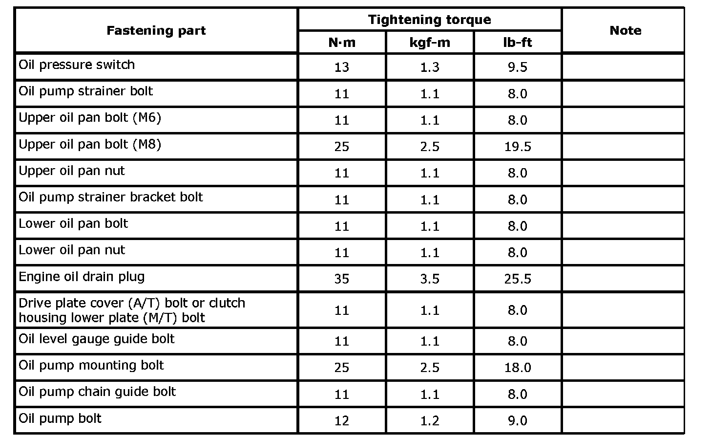Tightening Torque Specifications NOTE: The specified tightening torque is also described in the following.