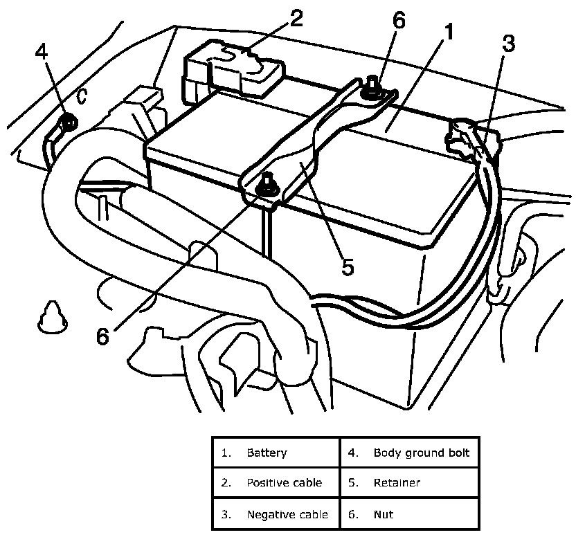 NOTE: Check to be sure that ground cable has enough clearance to hood panel by terminal.