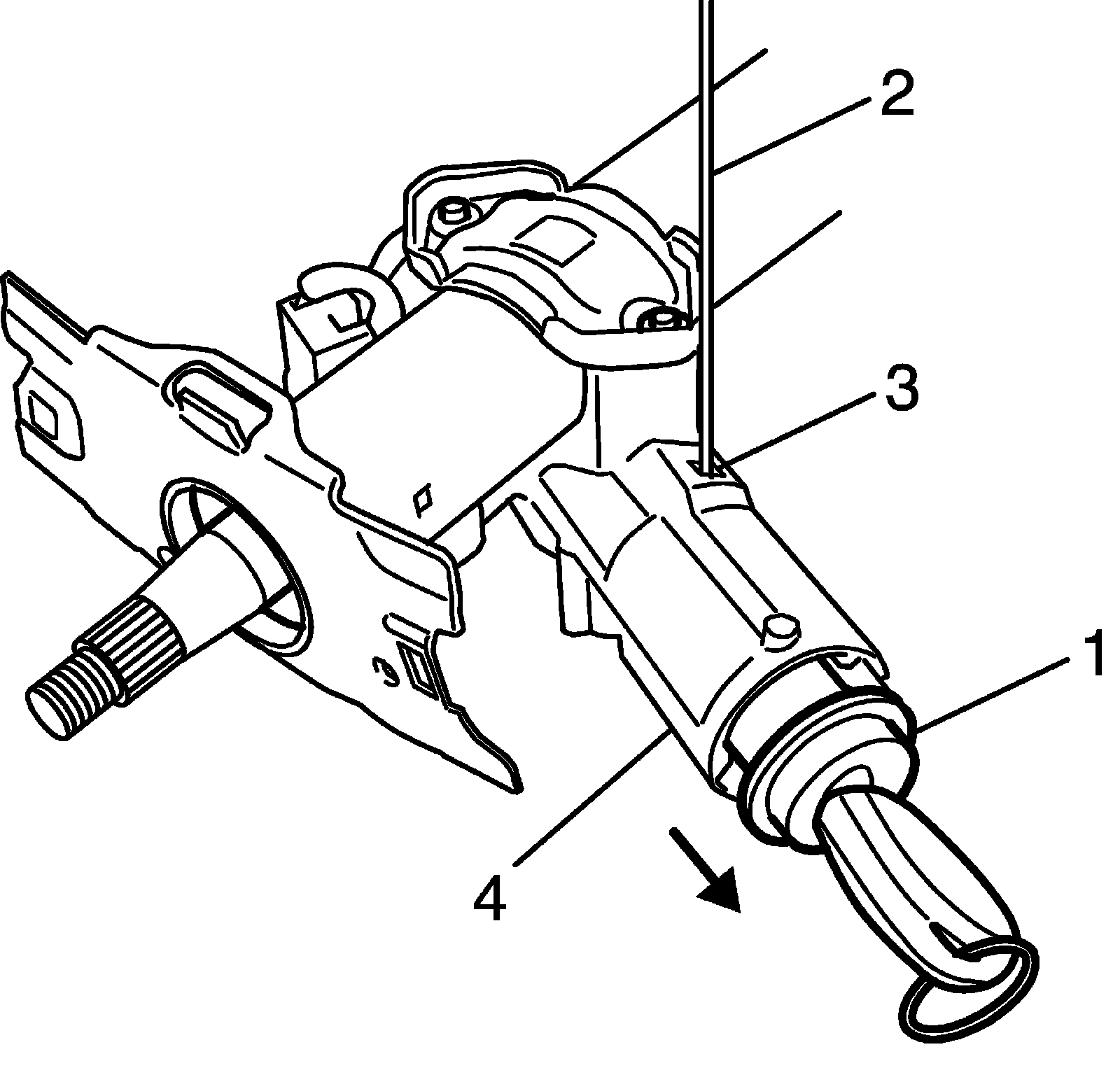 c) Detach ignition switch cylinder assembly (1) from steering lock assembly (4).