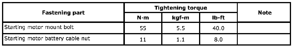 Reference:For the tightening torque of fastener not specified, refer to Fastener Information.