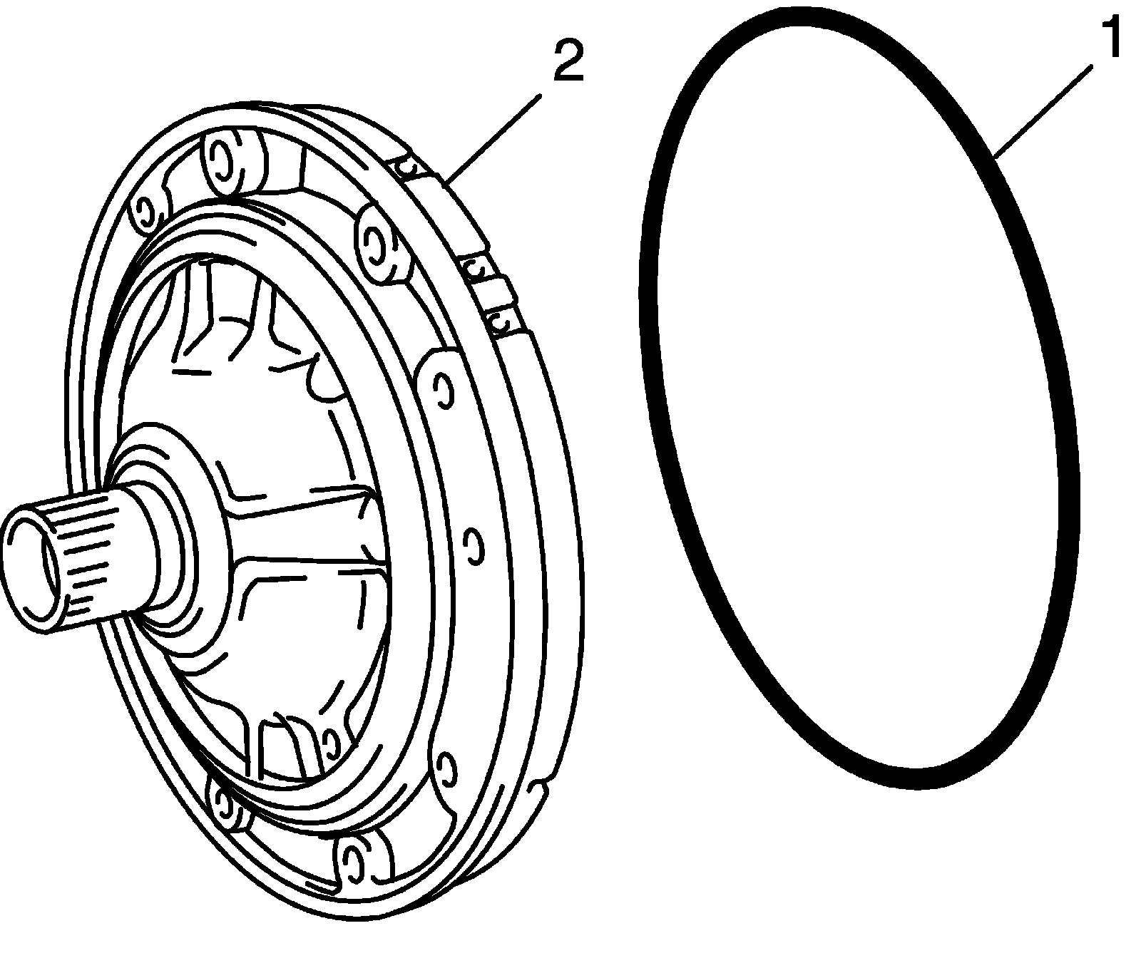 69) After applying A/T fluid to new O-ring (1) and then install O-ring to oil pump assembly (2).