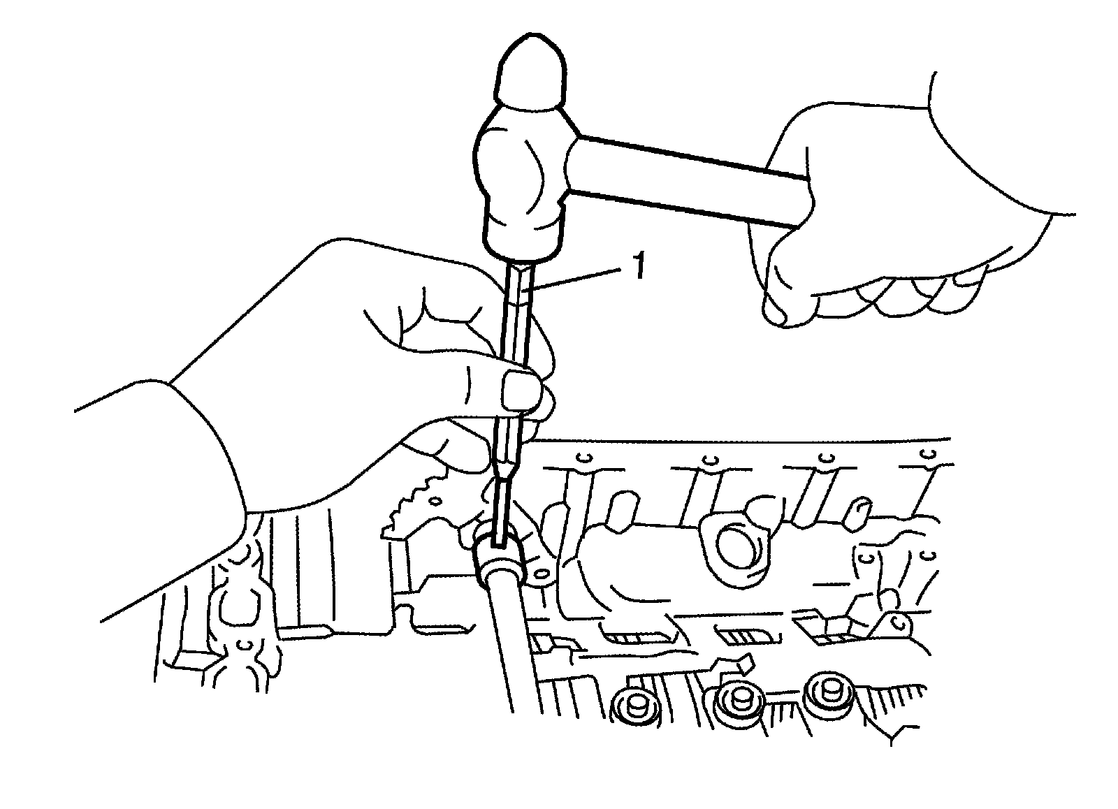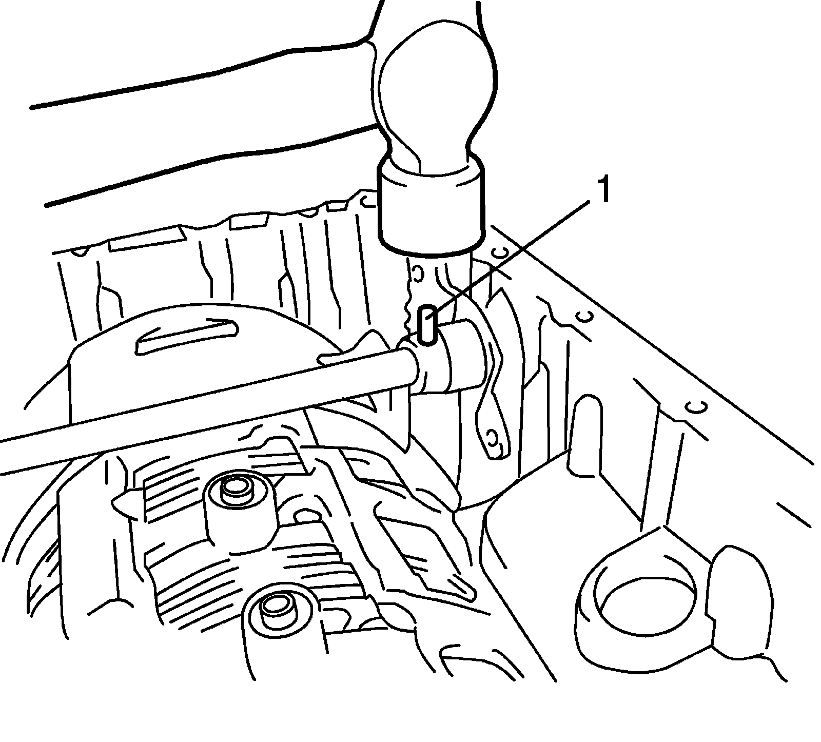 76) Align hole in sleeve cover with dent in manual shift lever and caulk securely with pin punch (1). Then check that manual shift shaft turns smoothly.