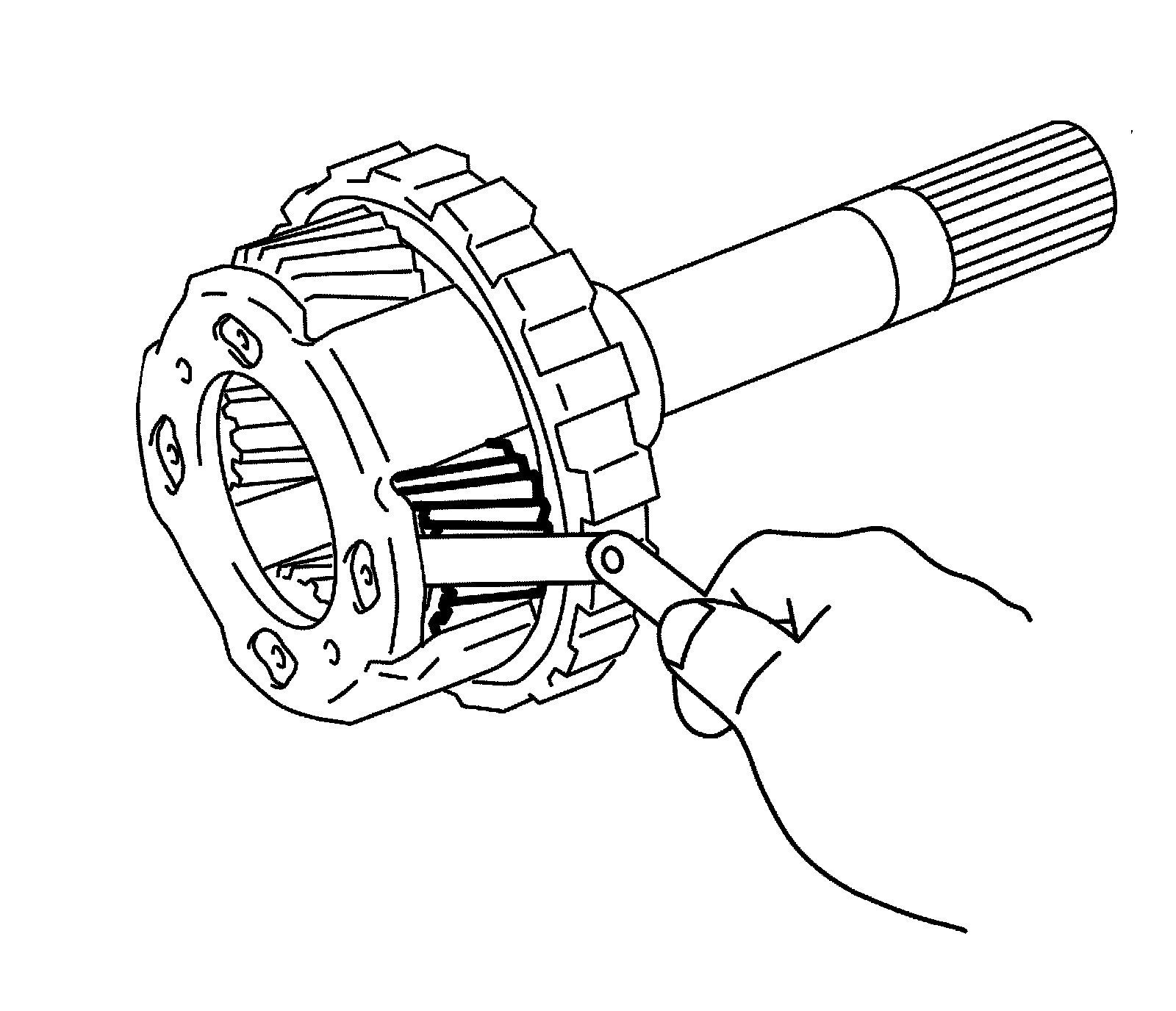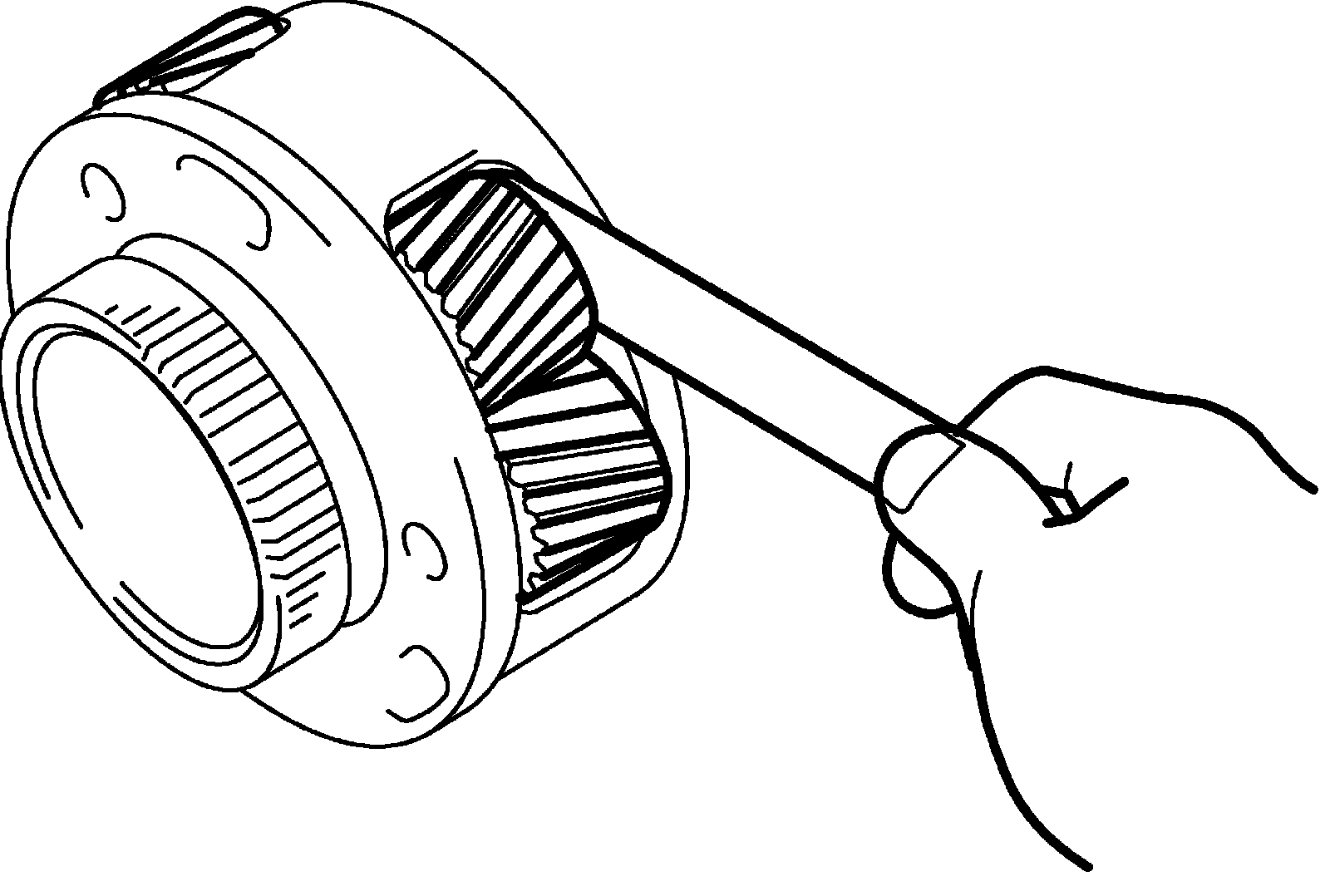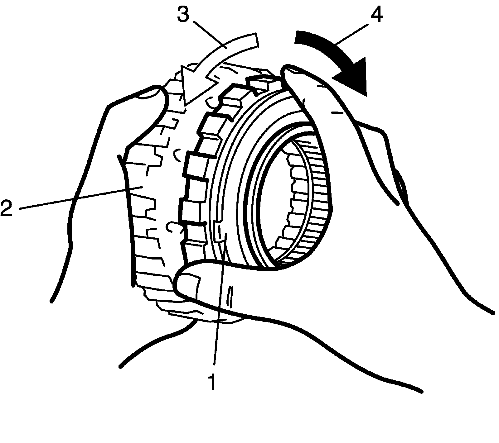 ^ Hold rear planetary ring gear flange sub assembly (1) and turn one-way No. 3 clutch assembly (2). Check that one-way No.3 clutch assembly (2) can be turned freely (3) counterclockwise and locked (4) clockwise.