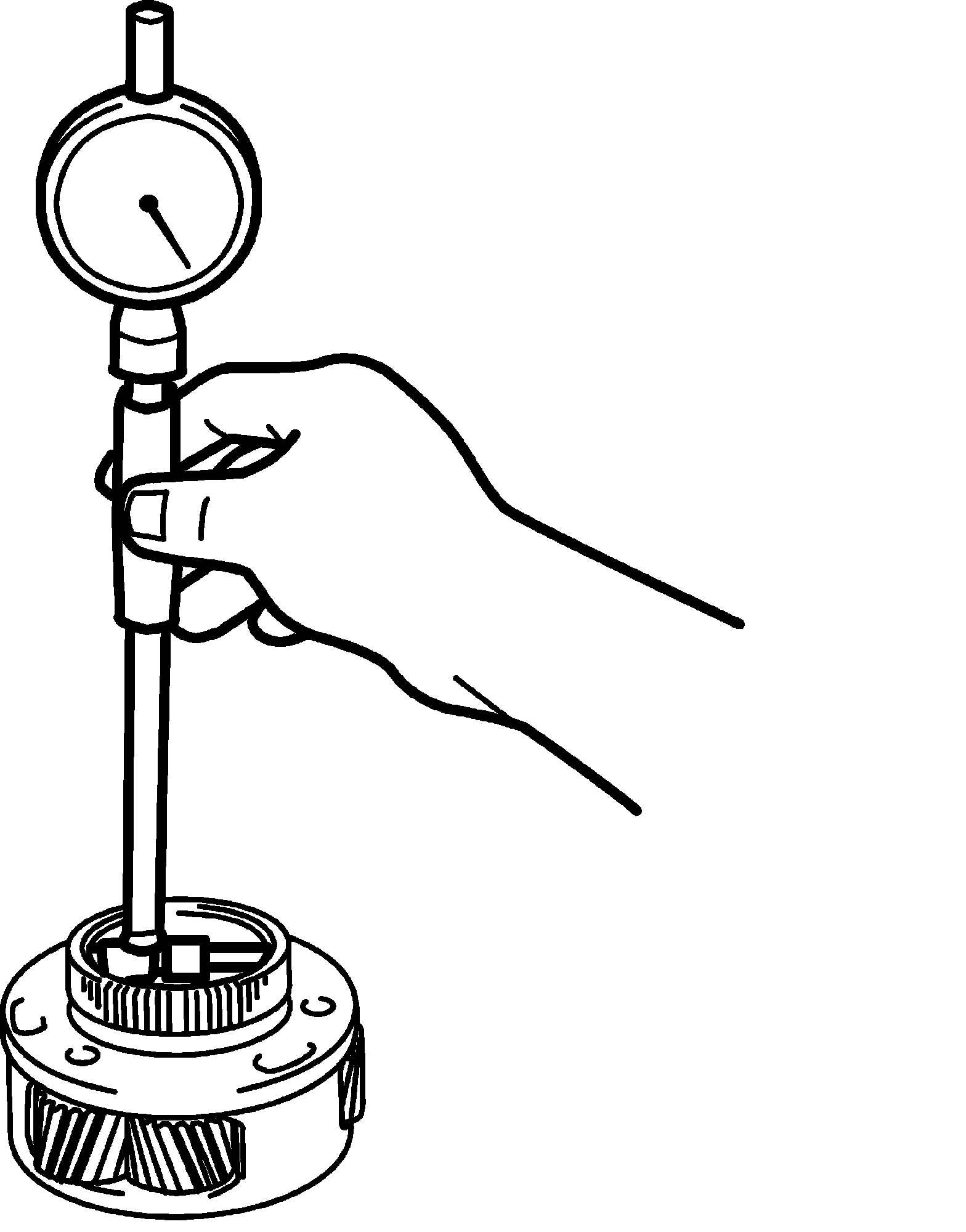 ^ Measure planetary pinion gear thrust clearance by using thickness gauge. If clearance exceeds limit, replace middle planetary gear assembly.