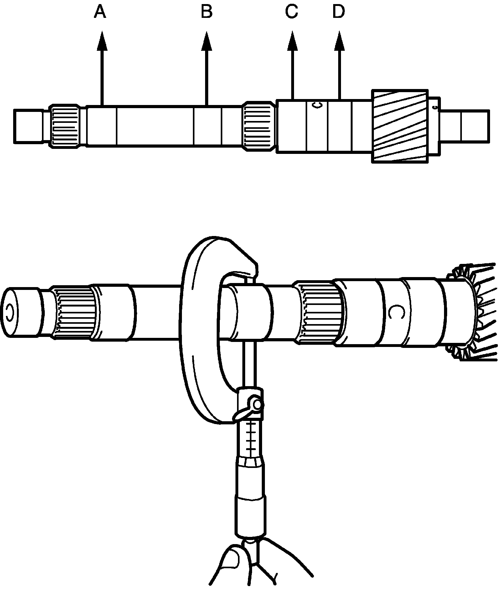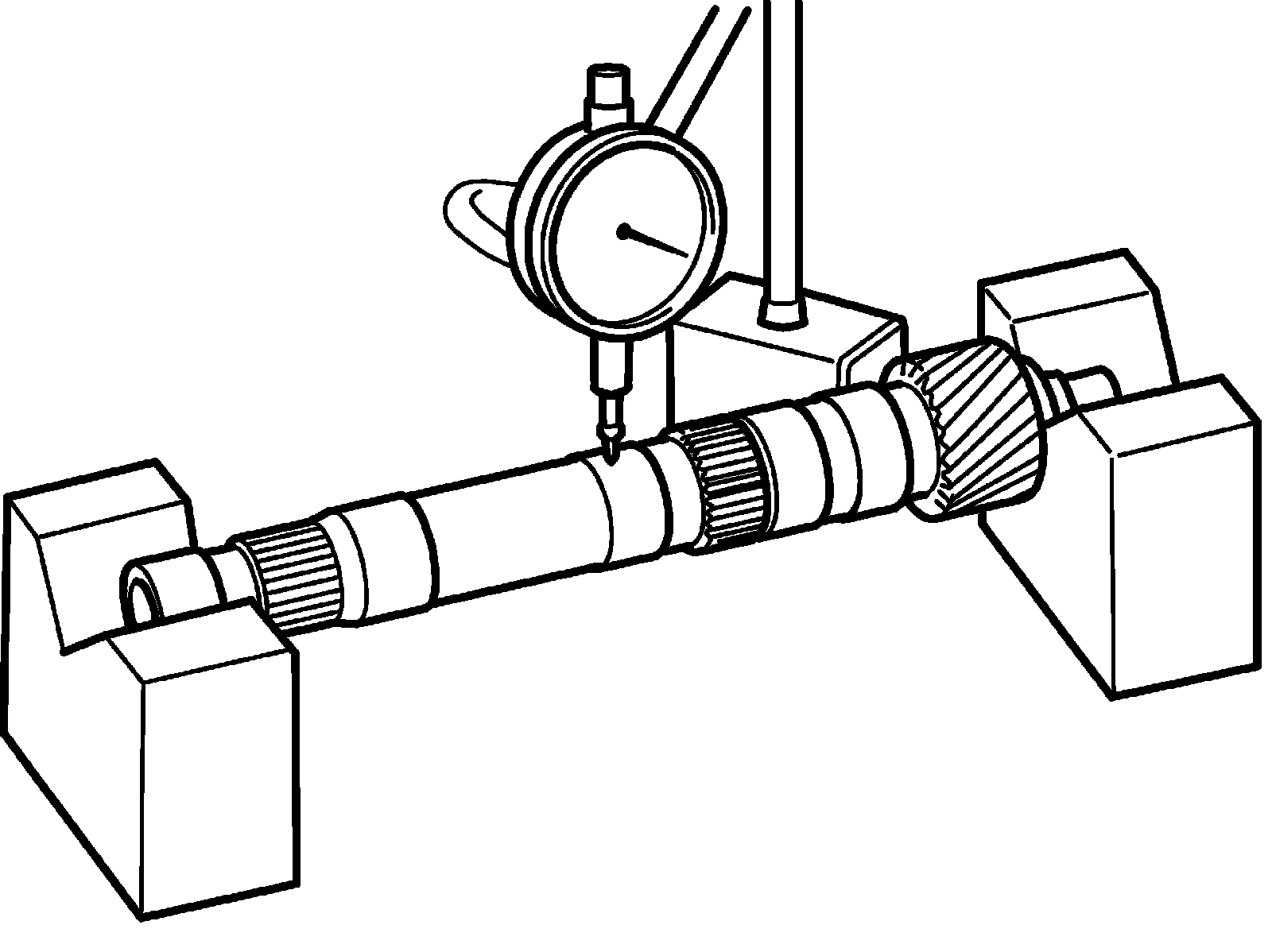^ Set intermediate shaft between two "V" blocks, and measure its runout by using a dial gauge. If runout exceeds limit, replace intermediate shaft with new one.