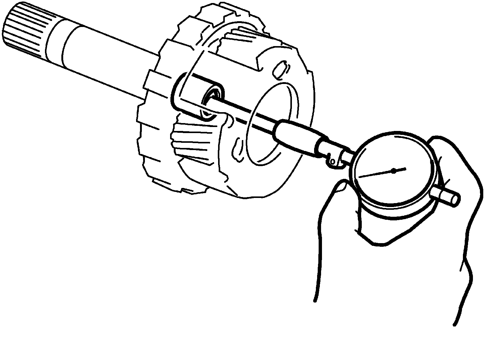 ^ Measure inside diameter of rear planetary gear assembly bushing. If inside diameter exceeds limit, replace rear planetary gear assembly.
