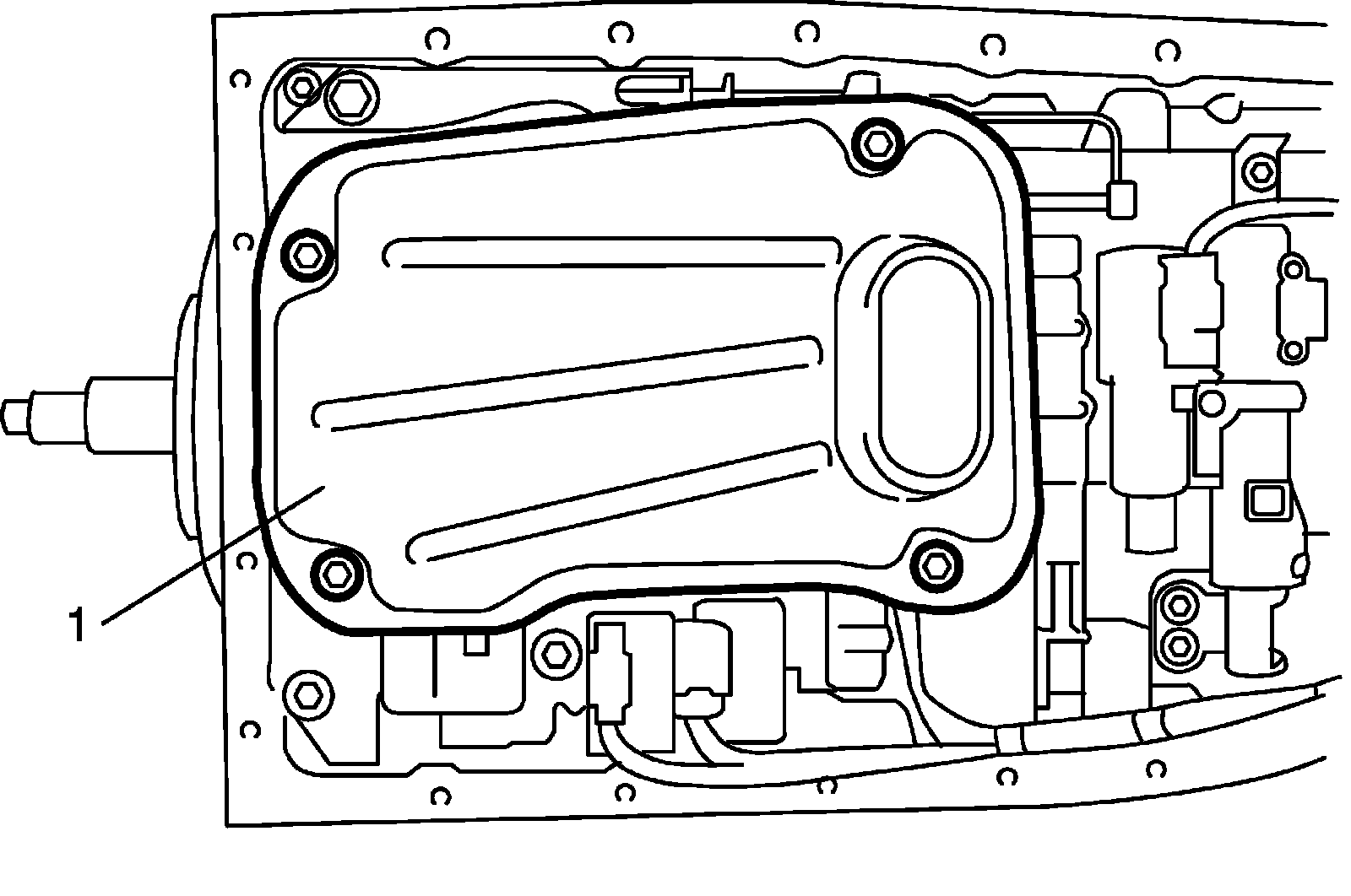 7) Remove A/T oil strainer (1).