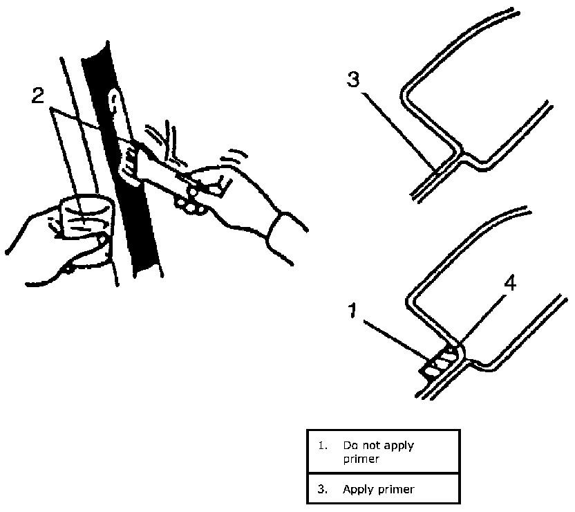7. Using new brush, apply sufficient amount of primer onto glass along glass edge.