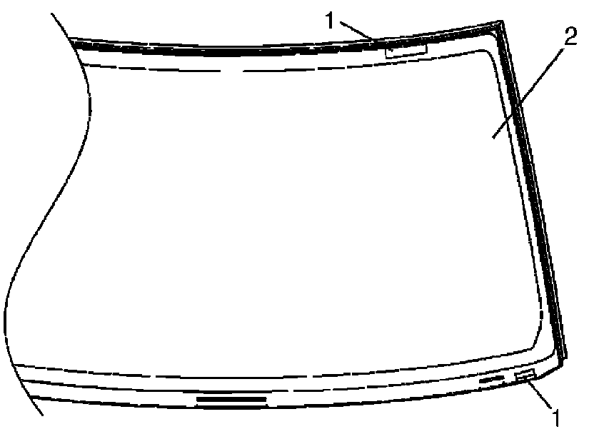 - Press glass (2) against fittings surface of body panel quickly after adhesive (1) is applied.