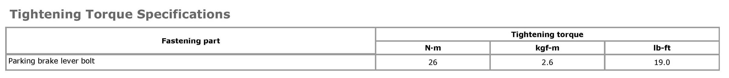 Tightening Torque SpecificationsNOTE: The specified tightening torque is also described in the following. Parking Brake Cable Construction