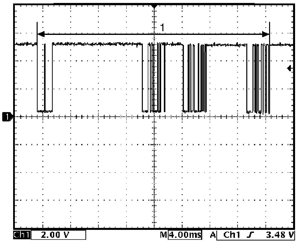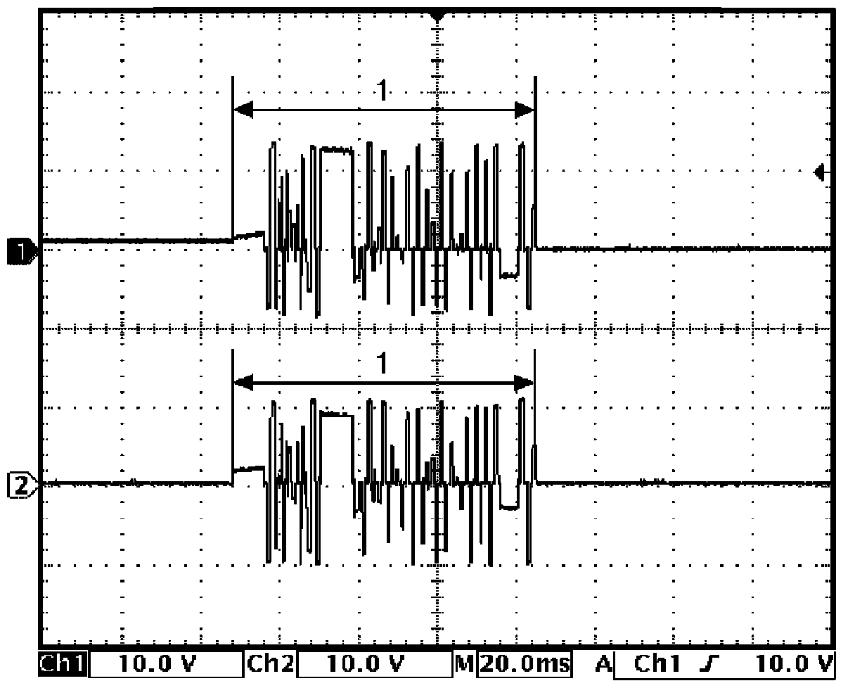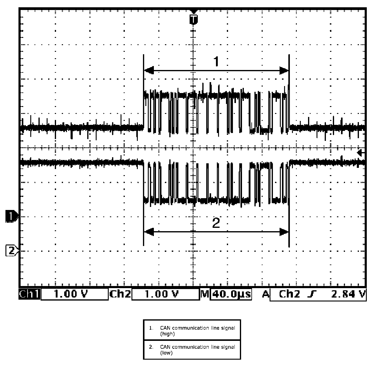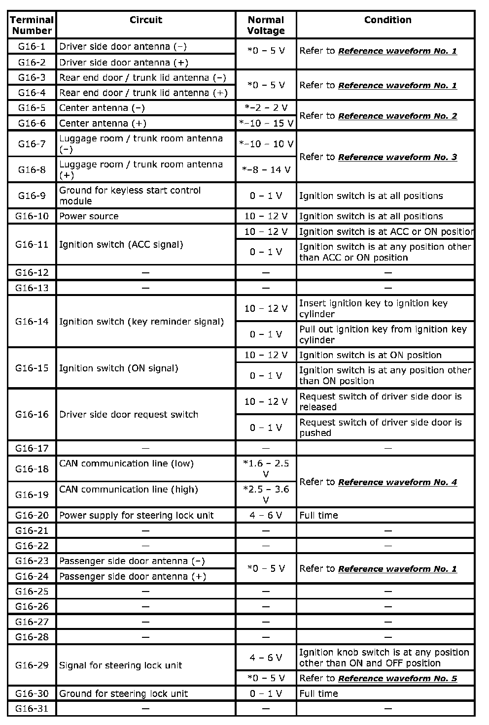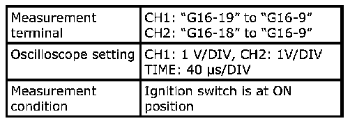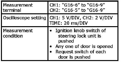(Signal (1) communicated between keyless start control module and steering lock unit when measurement condition described below applies)