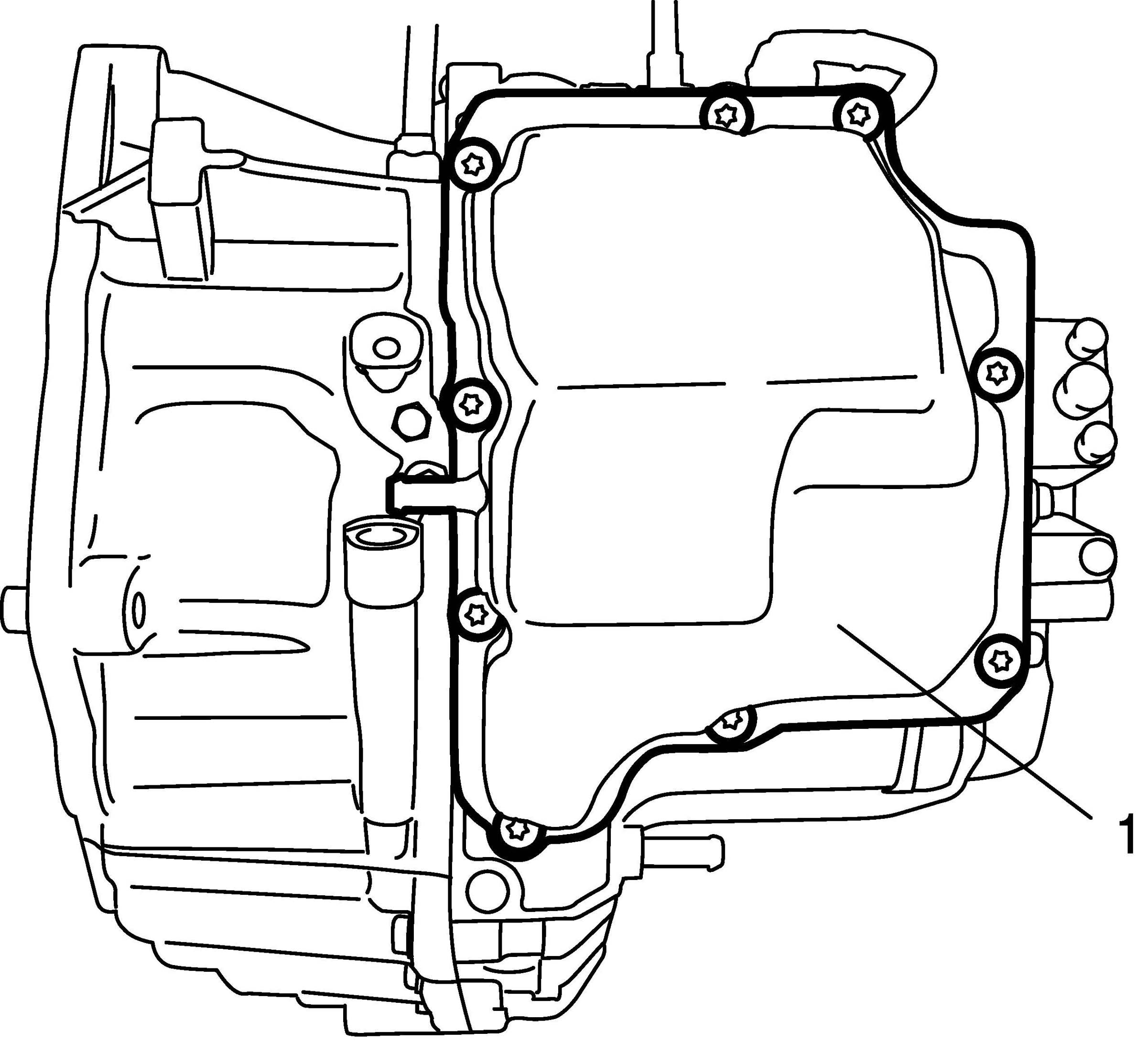 8. Install new transaxle side cover (1) by tightening new torx bolts to specified torque.
