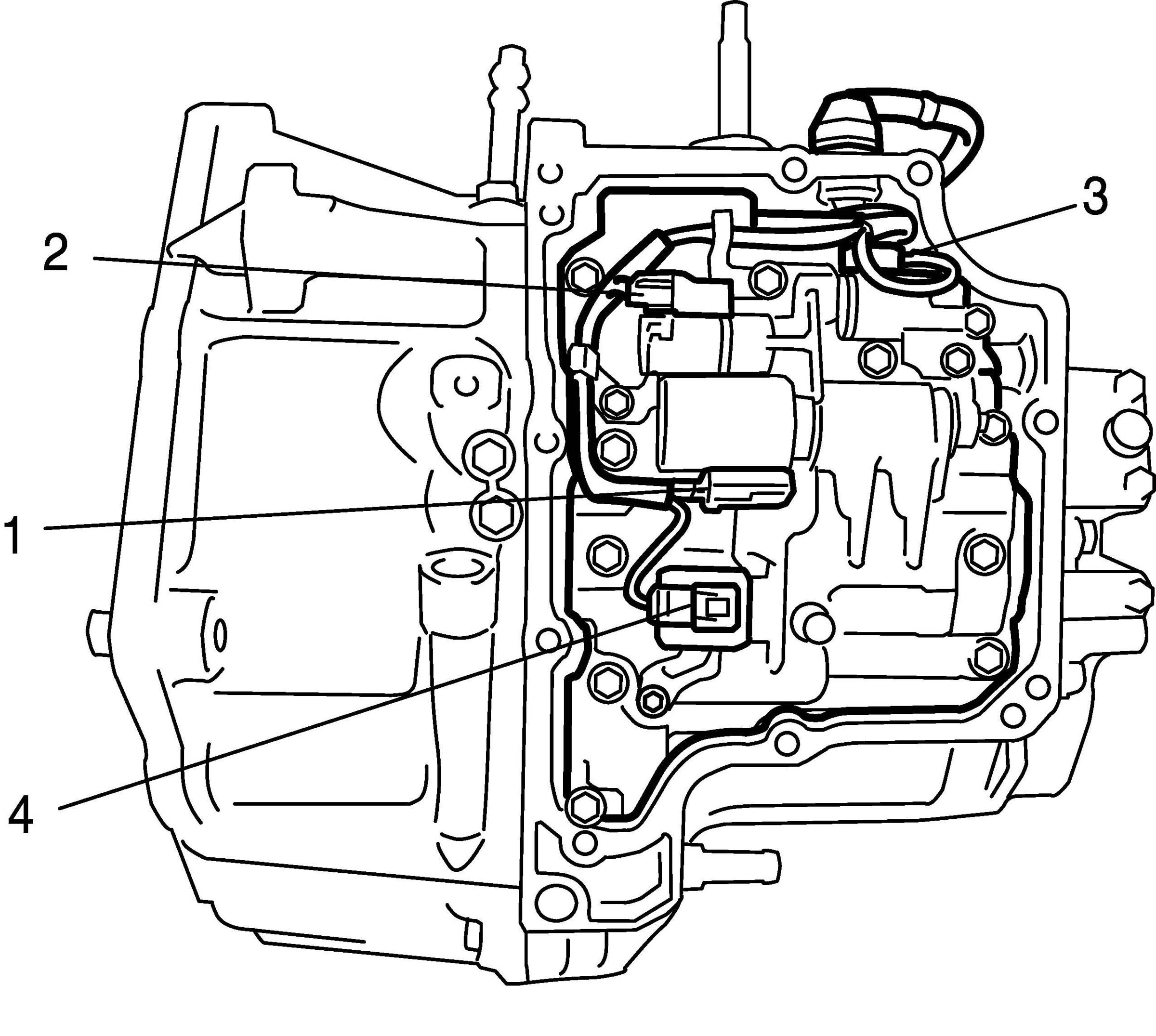 6. Remove pressure control solenoid valve (2) after removing bolt (1).