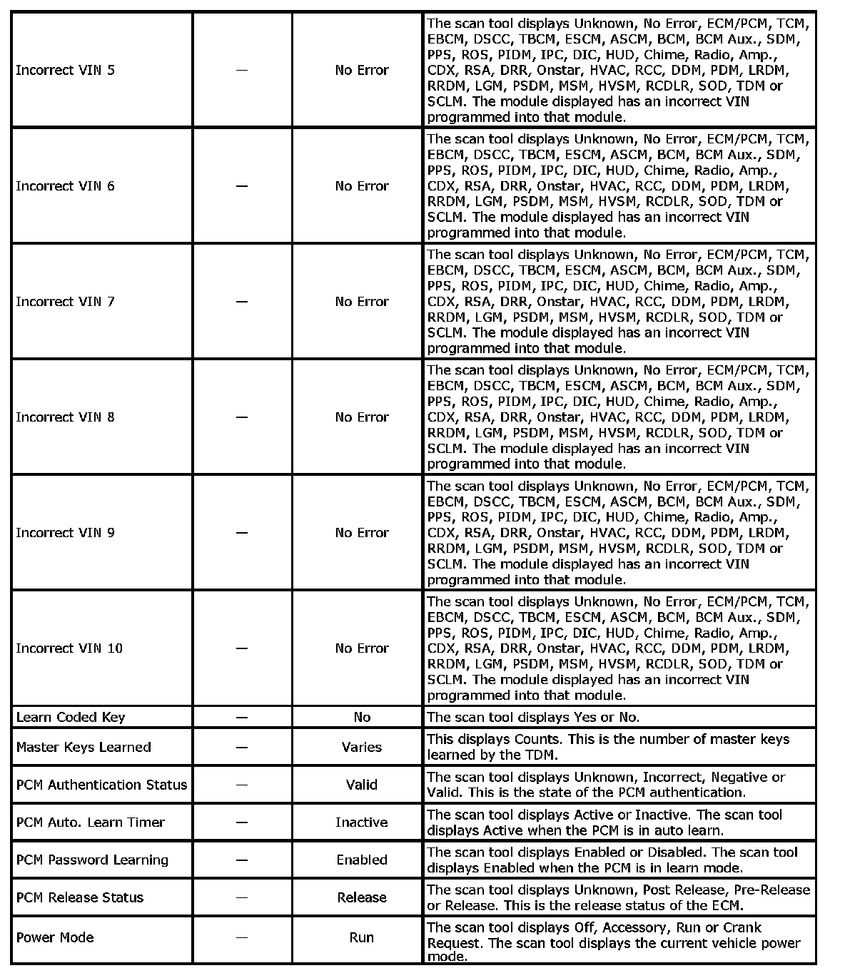 Theft Deterrent Module Scan Tool Information