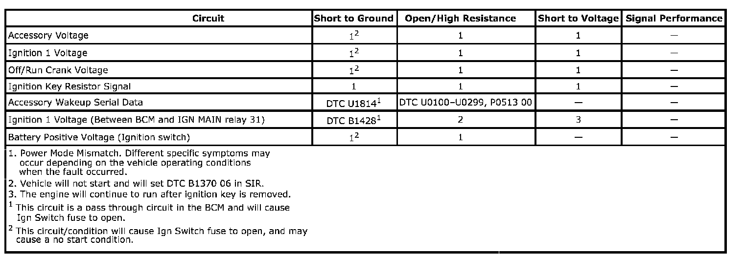 The PMM will activate relays and other direct outputs of the PMM as needed according to the calculated power mode. Several relays controlled by the BCM are switched ignition voltage outputs the are pass through circuits within the BCM directly from the ignition switch. If these circuits short to ground, the fuse to the ignition switch will open. Some system functions may operate one time and not the next with a specific fault in the ignition switch circuits depending on the vehicle operating conditions when the fault occurred. Some examples are as follows: