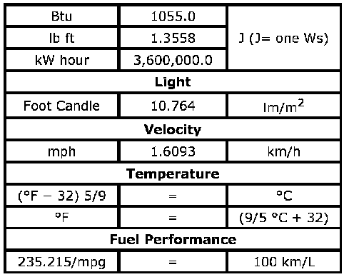 US English/Metric Conversion