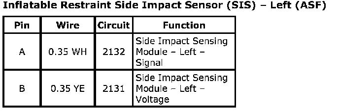 Inflatable Restraint Side Impact Sensor (SIS) - Left (ASF):