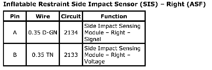 Inflatable Restraint Side Impact Sensor (SIS) - Right (ASF):
