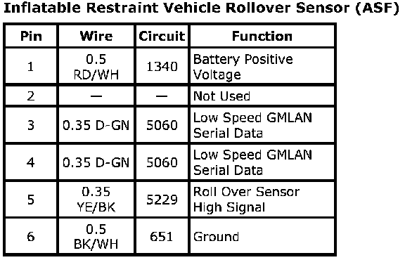 Inflatable Restraint Vehicle Rollover Sensor (ASF)