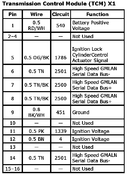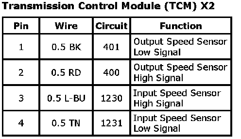 Transmission Control Module (TCM) X1Connector Part Information