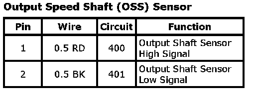 Output Speed Shaft (OSS) SensorConnector Part Information