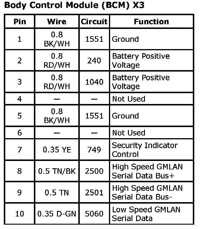 Body Control Module (BCM) X1Body Control Module (BCM) X1: