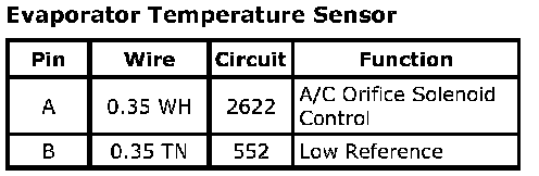 Evaporator Temperature SensorConnector Part Information