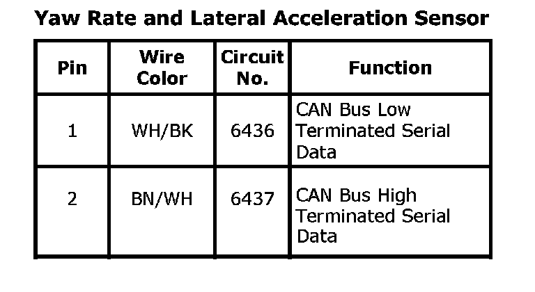 Yaw Rate and Lateral Acceleration SensorConnector Part Information