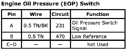 Engine Oil Pressure (EOP) SwitchConnector Part Information