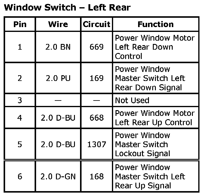 Window Switch - Left Rear: