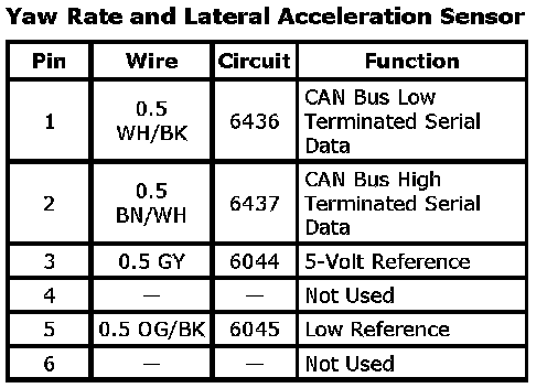 Yaw Rate and Lateral Acceleration SensorConnector Part Information