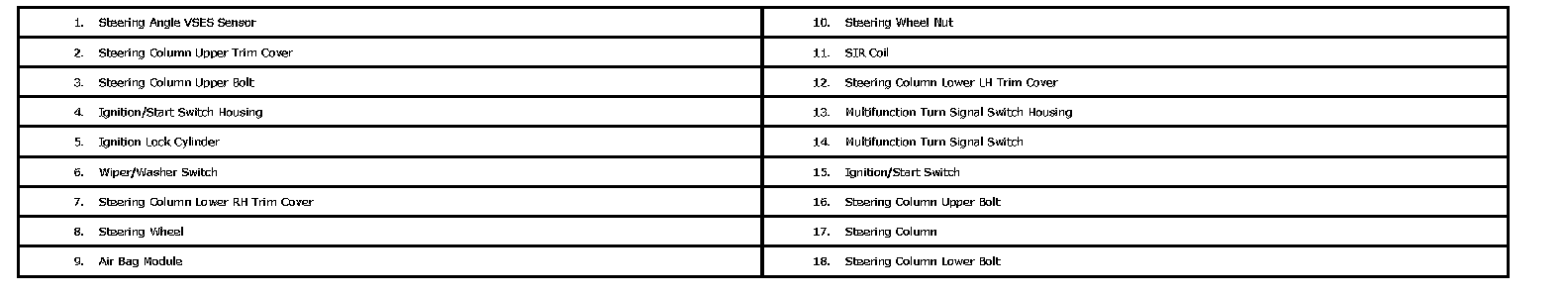 Steering Column Disassembled View: