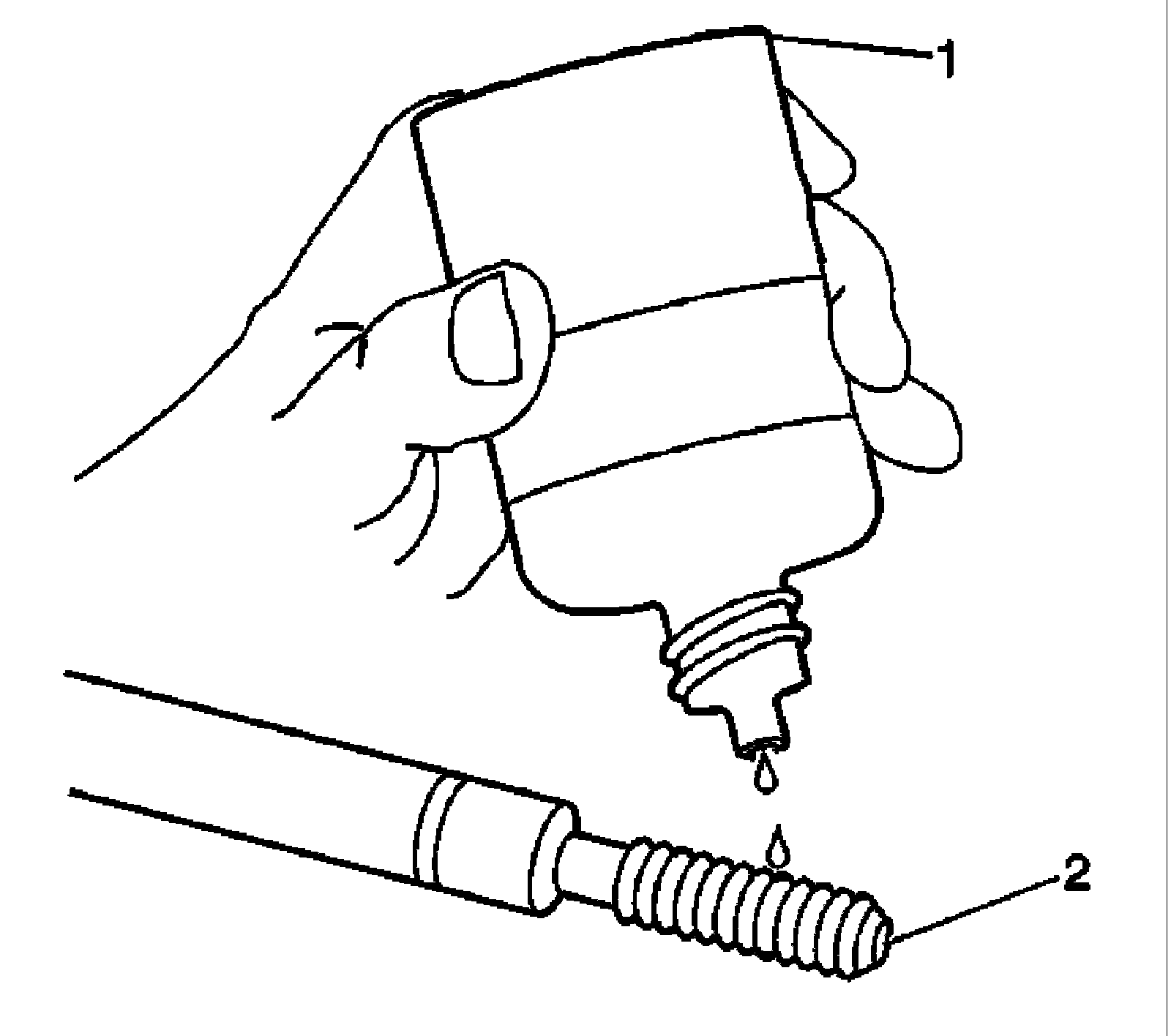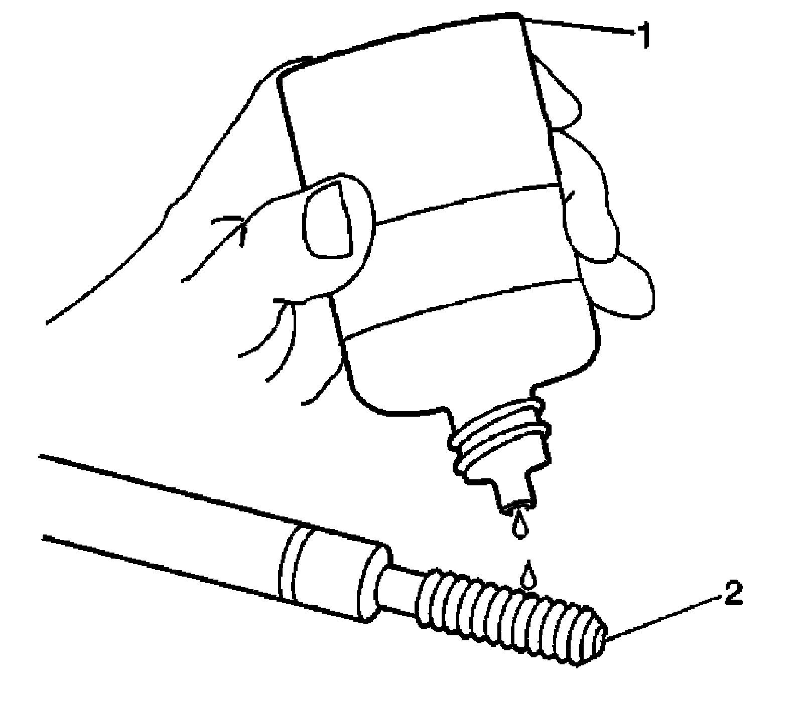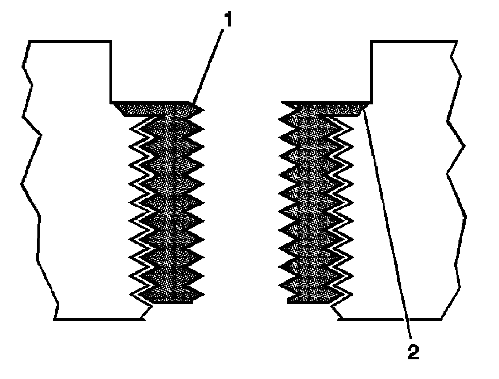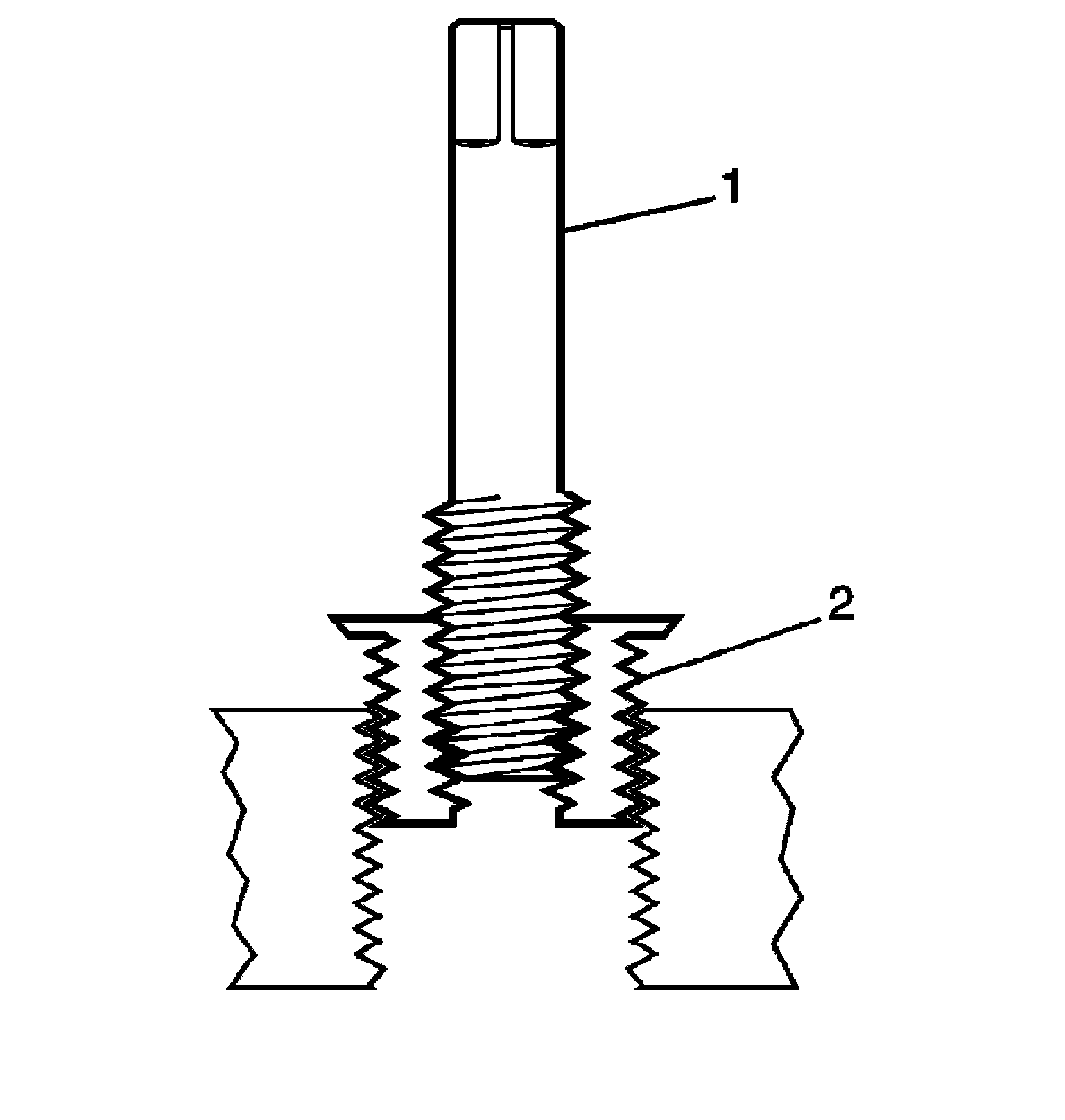10. Apply threadlock sealant GM P/N 12345493, (Canadian P/N 10953488), J 42385-109, LOCTITE 277(R) or equivalent (1) to the insert OD threads (2).