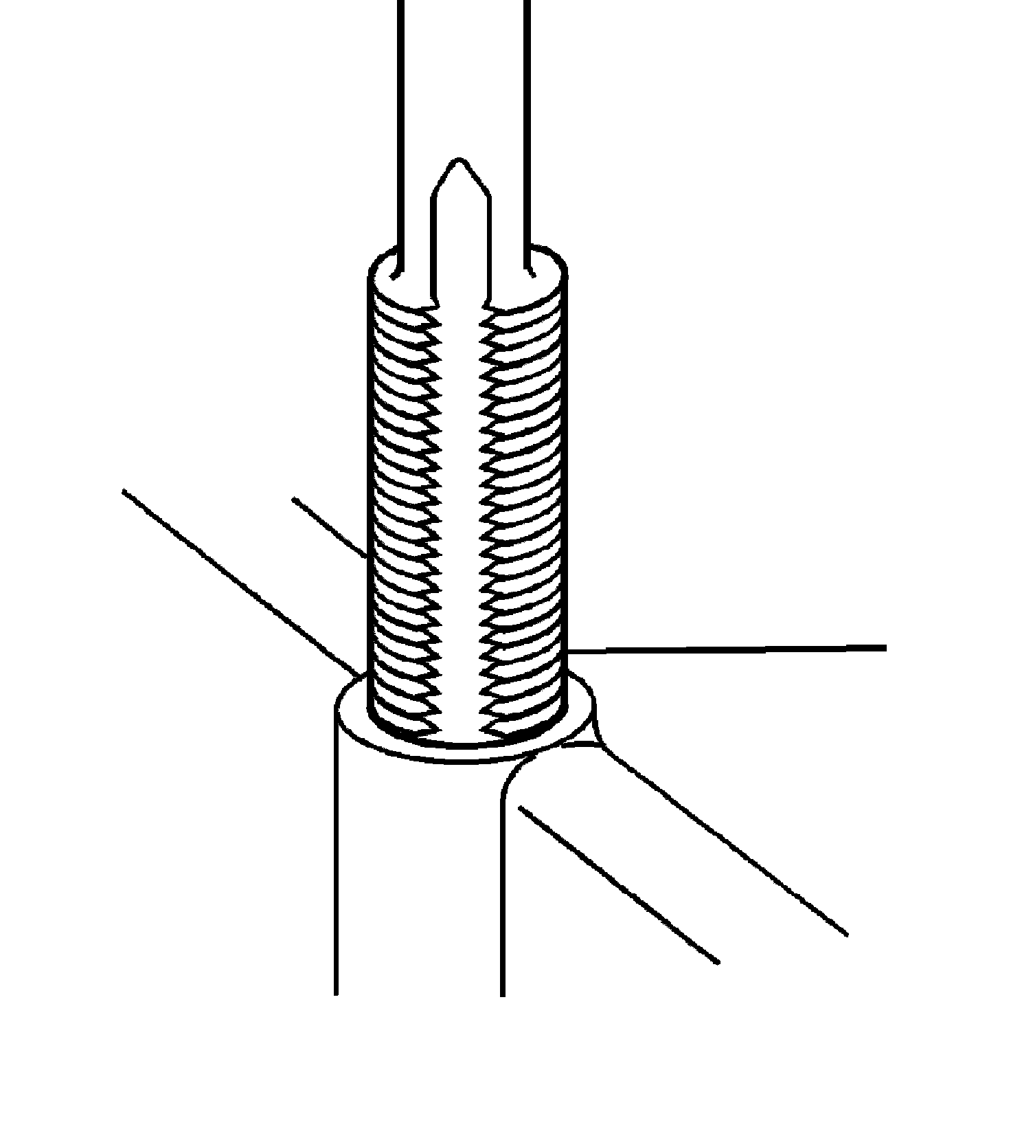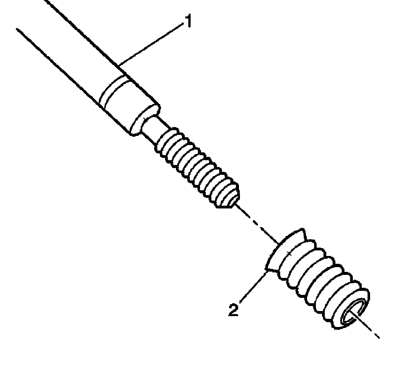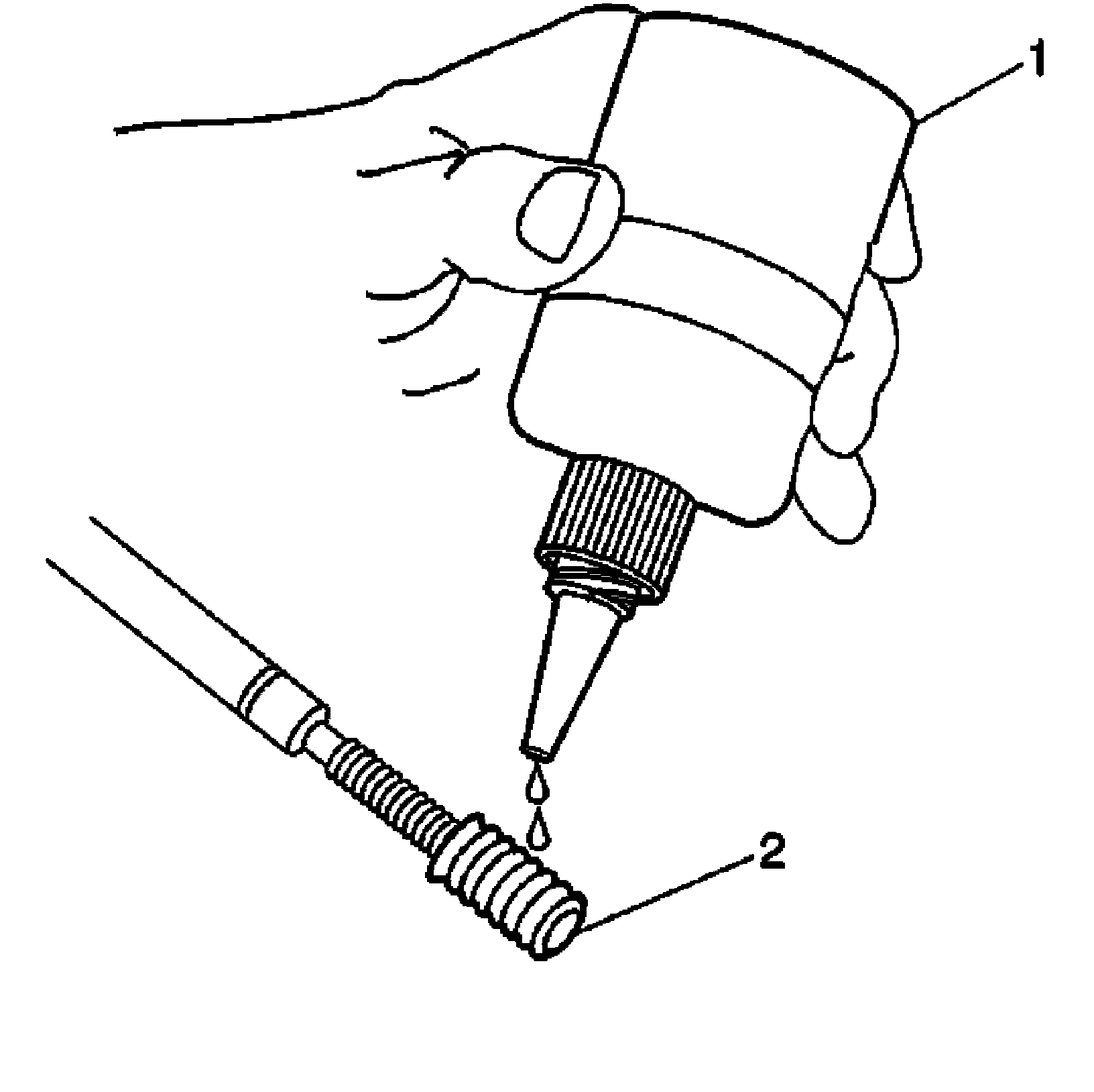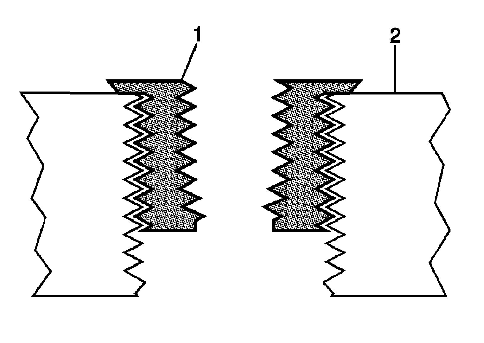 10. Apply threadlock sealant GM P/N 12345493, (Canadian P/N 10953488), J 42385-109, LOCTITE 277(R) or equivalent (1) to the insert OD threads (2).