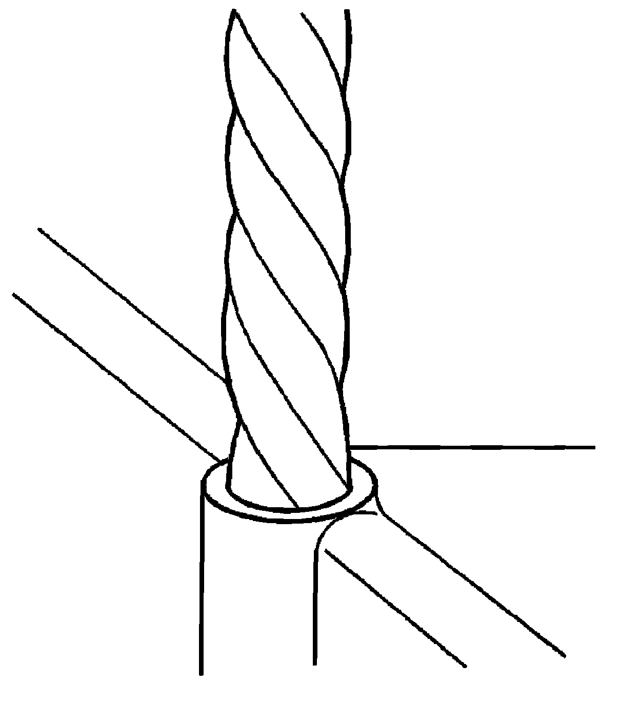 ^ During the drilling process, it is necessary to repeatedly remove the drill and clean chips from the hole and the flutes of the drill.
