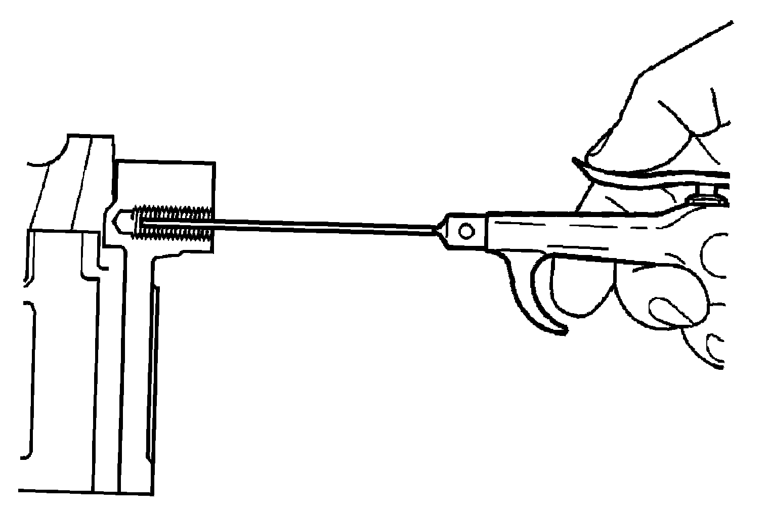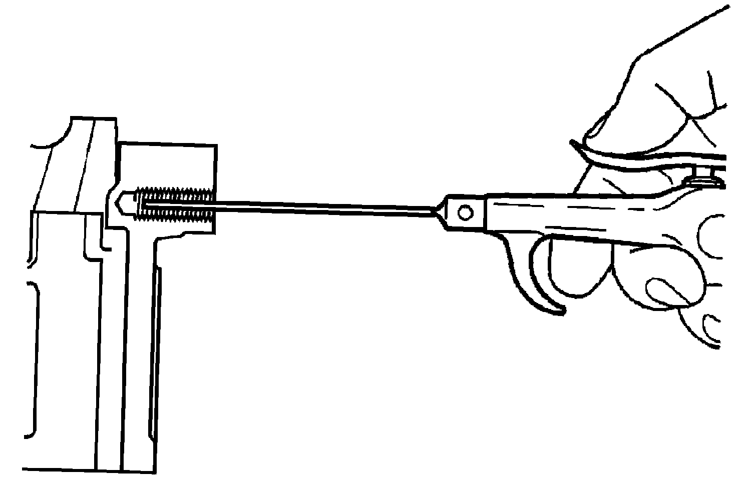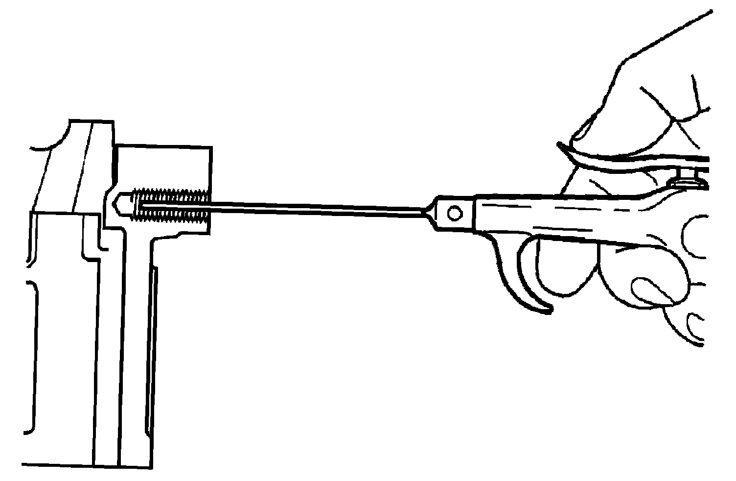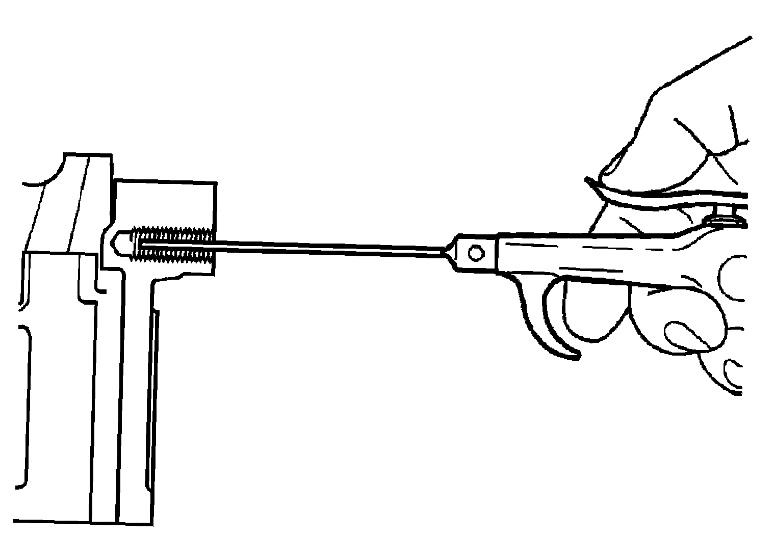 7. Spray cleaner GM P/N 12346139, GM P/N 12377981 (Canadian P/N 10953463) or equivalent into the tapped hole.