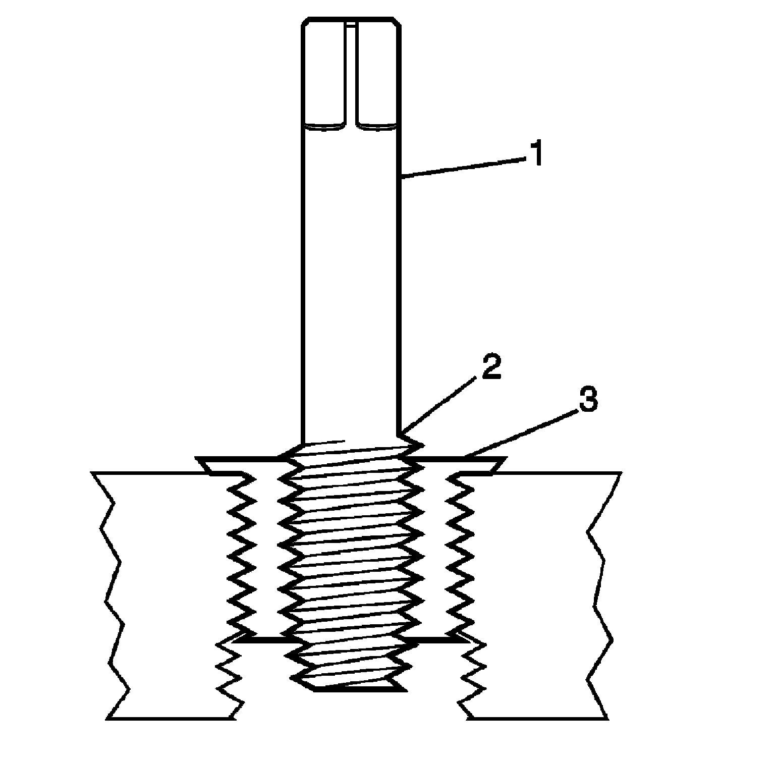 13. Continue to rotate the driver installation tool (1) until the top of the threaded section (2) is level with the top of the insert (3).