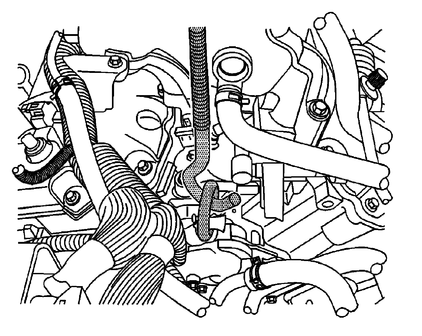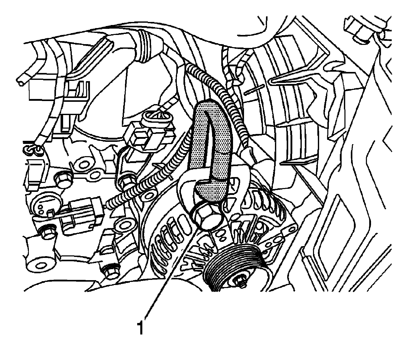 7. Remove the alternator bolt (1), then install the alternator bolt with the engine support bracket J 424511 to the engine.