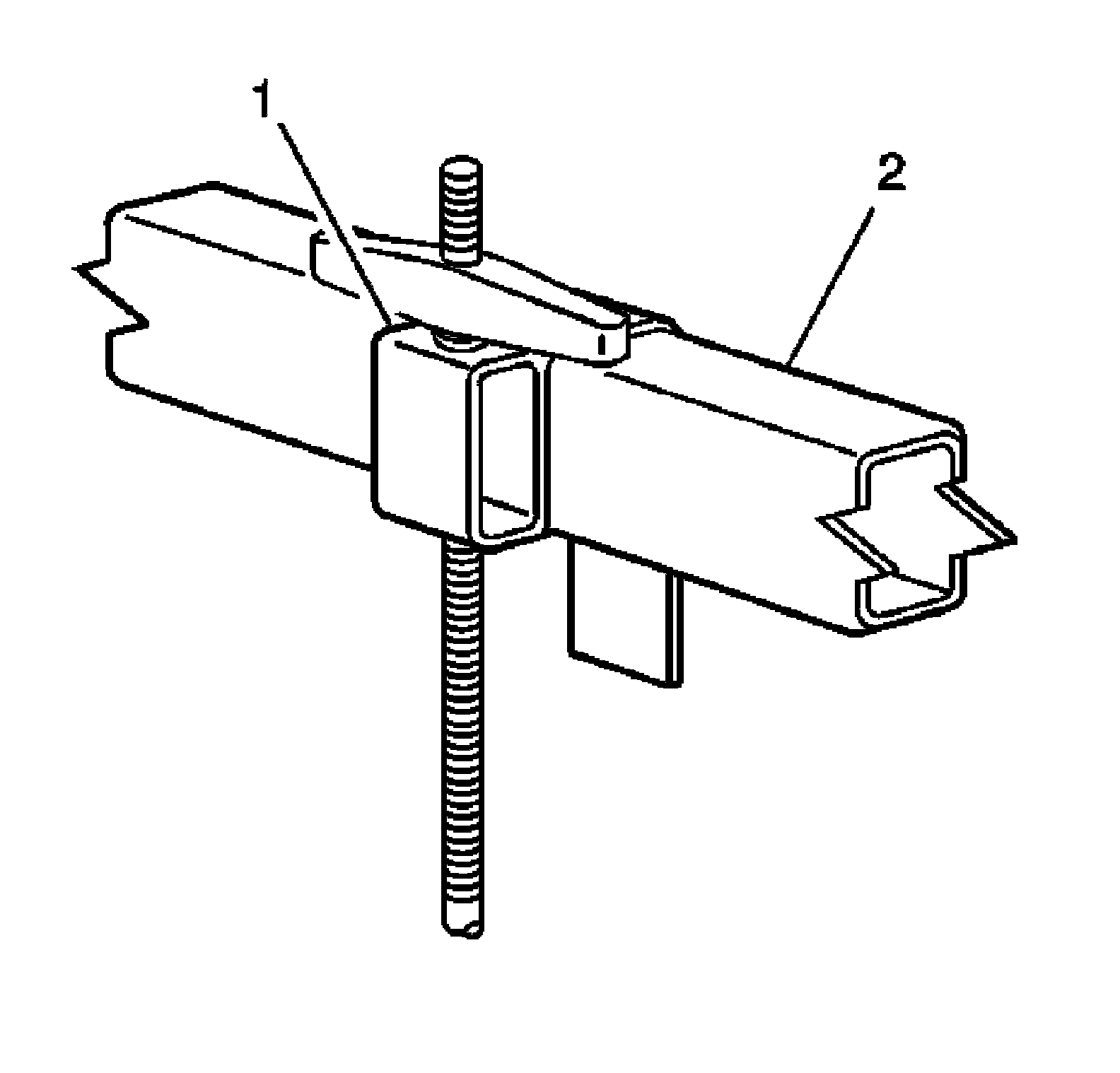 8. Position two 58 cm (23 in) engine support fixture cross bars (1) longitudinally with two J 36462-A leg assembly (2).